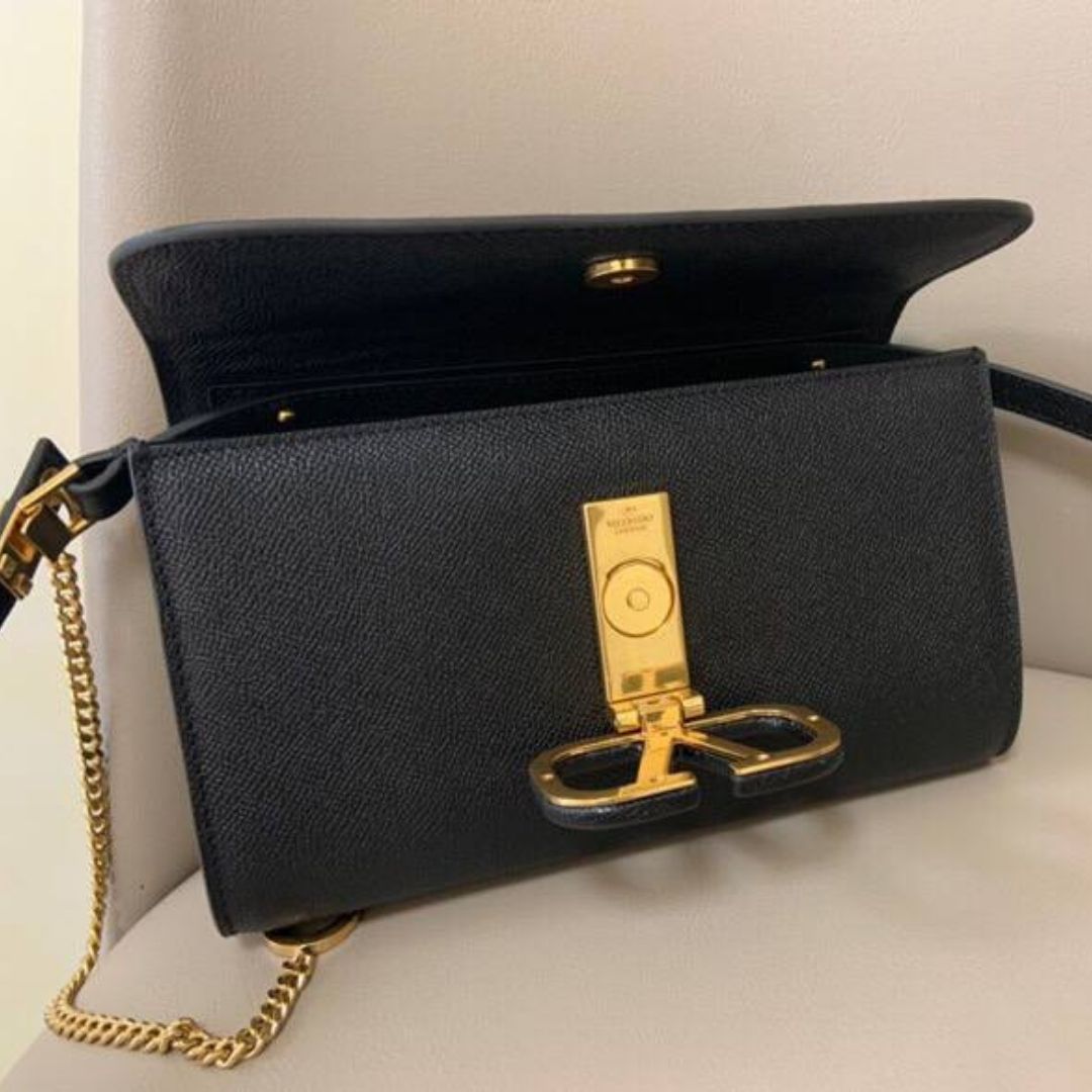 Borsa Valentino V-Logo in pelle nera 23 cm