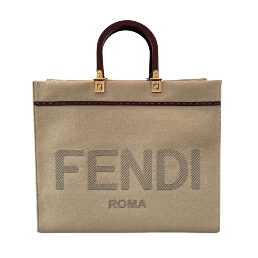 Borsa Fendi Sunshine shopper in tessuto marrone 35 cm