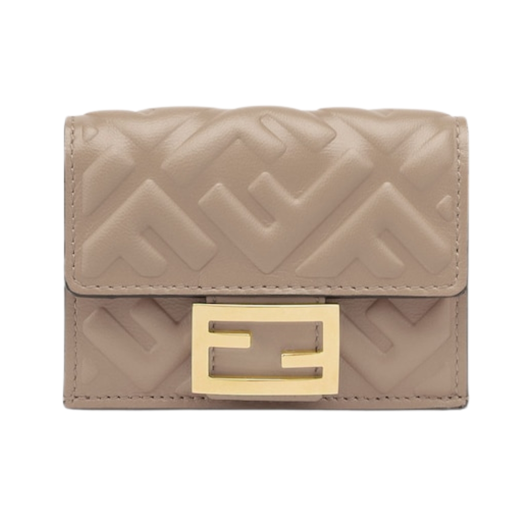 Portafoglio Fendi in pelle nappata grigio tortora 7,5 cm
