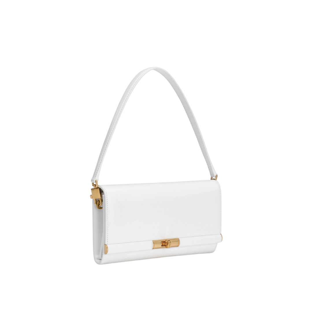 Borsa portafoglio Marlene in pelle bianca con dettaglio dorato