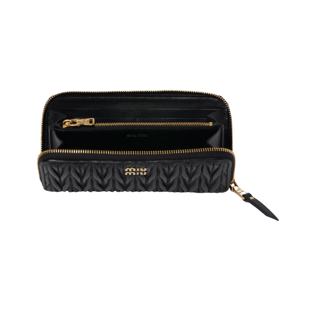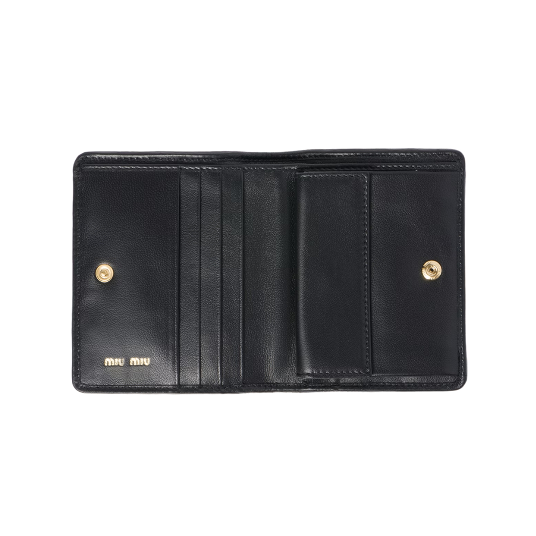 Portafoglio Miu Miu in pelle matelassé nera 7,8 cm