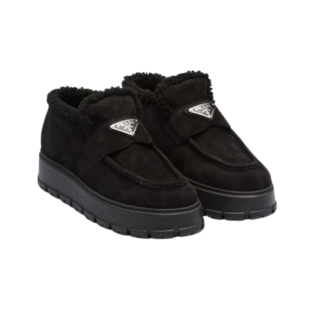 Stivaletti Prada con suola alta in camoscio nero